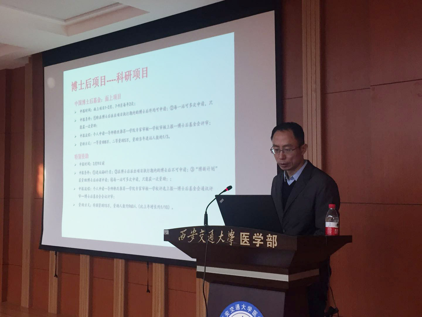 罗钰博士后以负责人的身份获得了“博新计划”的支持,他结合自身申报经验,详细讲解了申报“博新计划”的重要性、申报技巧以及注意事项。航天学院陈刚教授是博士后基金资深评审专家,他从评审专家的角度向各位博士后讲解了申报中国博士后基金需要注意的事项。贺睿主管最后对2018年上半年可申报的博士后项目进行了详细梳理和解读。