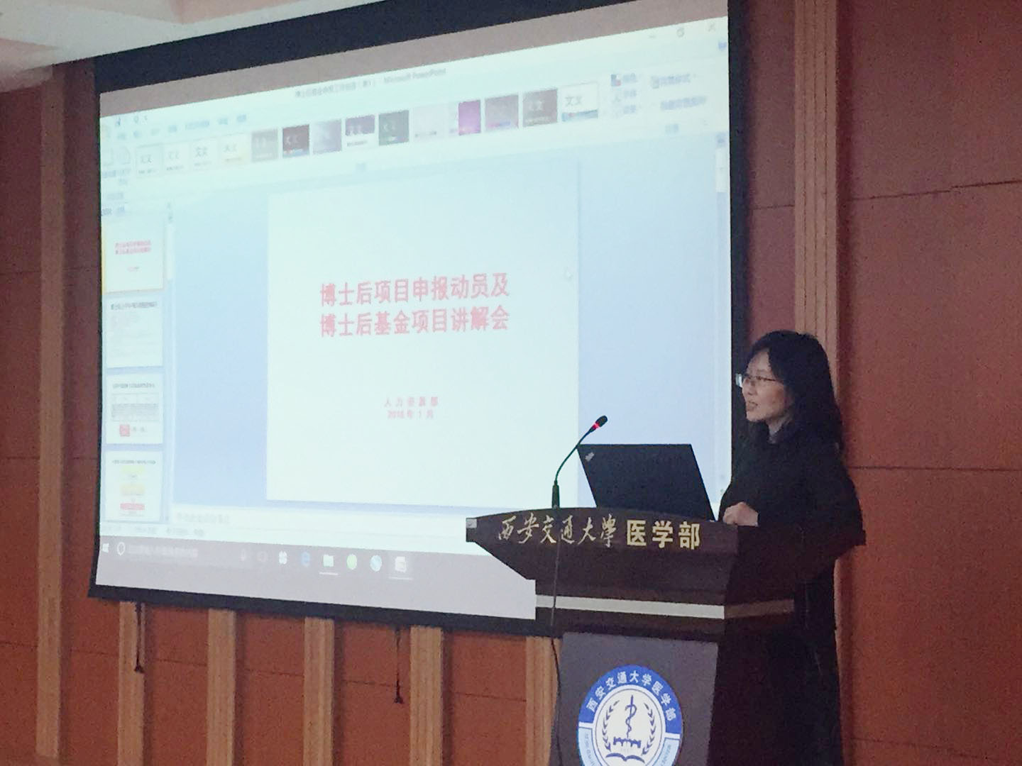 李艳芬副处长向专程来医学部进行博士后政策宣讲的专家和领导表示感谢,指出专题报告会将有助于医学各流动站和各位老师充分利用好国家博士后政策,提高博士后基金申报的成功率,要求各单位积极行动起来,开创2018年博士后基金申报新局面。